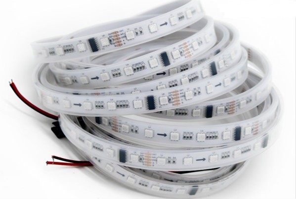 Светодиодная лента SMD 5050 состоит из множества ЛЕД элементов. Существует несколько разновидностей, оснащенных разным количеством диодов на метр длины: